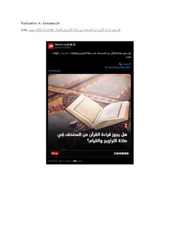 Publication: X – Emirates 24 Link: بيجي ءاتفلإل تاراملإا# ..؟مايقلاو حيوارتلا ةلاص يف فحصملا نم نآرقلا ةءارق زوجي له