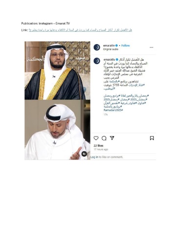 Publication: Instagram – Emarat TV Link: ؟عوشخب ةدحاو ةرم اهئاعدب ءافتكلاا مأ ةنسلا يف تدرو امك ءاسملاو حابصلا راكذأ راركت لضفلأا له