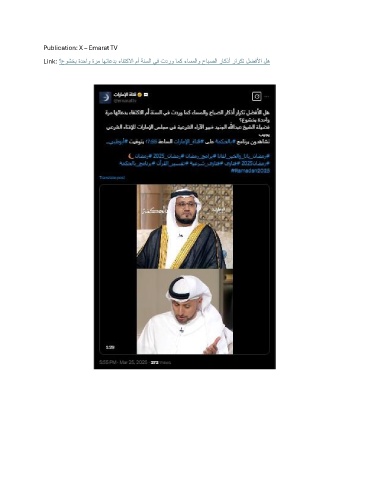 Publication: X – Emarat TV Link: ؟عوشخب ةدحاو ةرم اهئاعدب ءافتكلاا مأ ةنسلا يف تدرو امك ءاسملاو حابصلا راكذأ راركت لضفلأا له