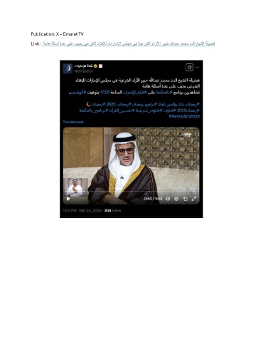 Publication: X – Emarat TV Link: ةماه ةلئسأ ةدع ىلع بيجي يعرشلا ءاتفلإل تاراملإا سلجم يف ةيعرشلا ءارلآا ريبخ اللهدبع دمحم ددلا خيشلا ةليضف