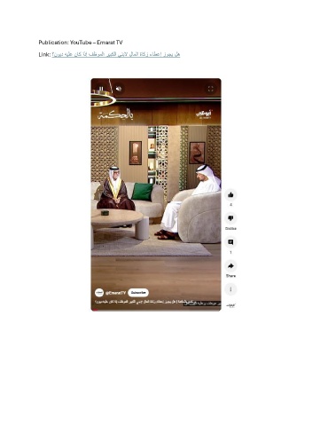 Publication: YouTube – Emarat TV Link: ؟نويد هيلع ناك اذإ فظوملا ريبكلا ينبلا لاملا ةاكز ءاطعإ زوجي له