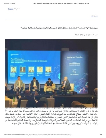 9/29/25, 11:37 AM                ﻲﺑظوﺑأ ﺎﻛﯾﻧﺎﻛﯾﻣوﺗوأ ضرﻌﻣ تﺎﯾﻟﺎﻌﻓ لﻼﺧ ﻲﻛذﻟا لﻘﻧﺗﻟا لﺑﻘﺗﺳﻣ نﺎﺿرﻌﺗﺳﺗ " دوﻌﺳﻣﻟا"و "نوﺗﺳﺟﯾرﺑ" | ﺔﻛرﺗﺷﻣﻟا ﺔﯾﺑرﻌﻟا قوﺳﻟا