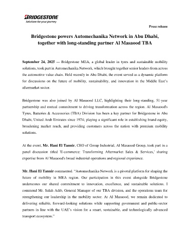 September 24, 2025 — Bridgestone MEA, a global leader in tyres and sustainable mobility