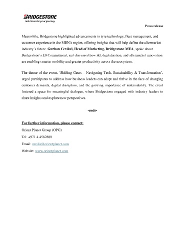 industry’s future. Gurhan Cevikel, Head of Marketing, Bridgestone MEA, spoke about