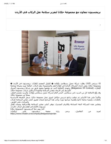 ندرﻷا ﻲﻓ بﺎﻛﺮﻟا ﻞﻘﻧ ﺔﻣﻼﺳ ﺰﻳﺰﻌﺘﻟ ﺎﻳﺎﻜﺣ ﺔﻋﻮﻤﺠﻣ ﻊﻣ نوﺎﻌﺘﺗ نﻮﺘﺴﺠﻳﺮﺑ