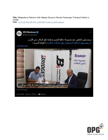 Title: Bridgestone Partners with Hakaya Group to Elevate Passenger Transport Safety in Jordan Link: ندرلأا يف باكرلا لقن ةملاس زيزعتل اياكح ةعومجم عم نواعتت نوتسجيرب