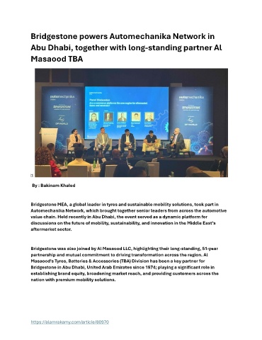 Bridgestone MEA, a global leader in tyres and sustainable mobility solutions, took part in