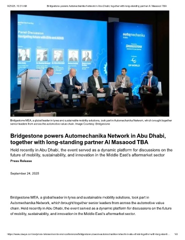 9/25/25, 10:31 AM Bridgestone powers Automechanika Network in Abu Dhabi, together with long-standing partner Al Masaood TBA