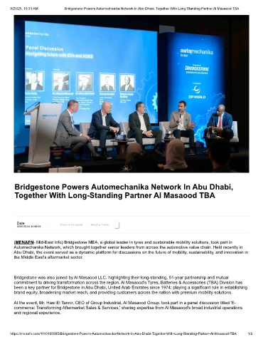 9/25/25, 10:31 AM Bridgestone Powers Automechanika Network In Abu Dhabi, Together With Long-Standing Partner Al Masaood TBA