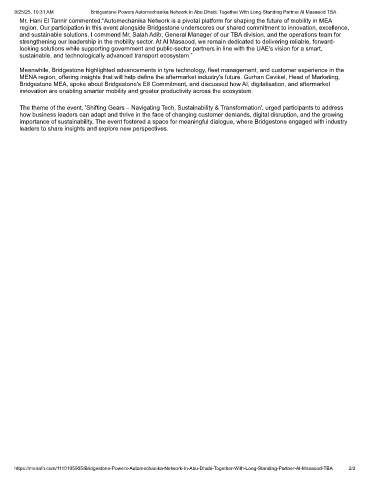9/25/25, 10:31 AM Bridgestone Powers Automechanika Network In Abu Dhabi, Together With Long-Standing Partner Al Masaood TBA