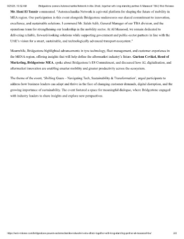 9/25/25, 10:32 AM Bridgestone powers Automechanika Network in Abu Dhabi, together with long-standing partner Al Masaood TBA | Web Release