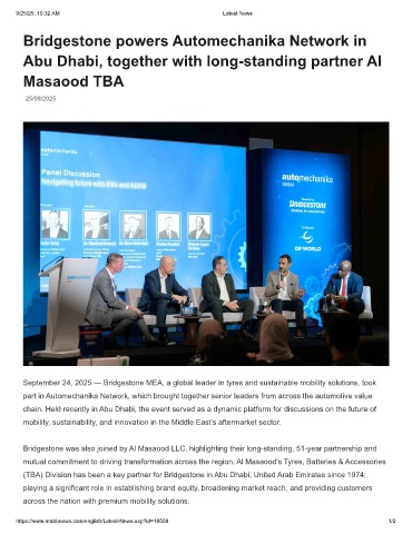 September 24, 2025 — Bridgestone MEA, a global leader in tyres and sustainable mobility solutions, took