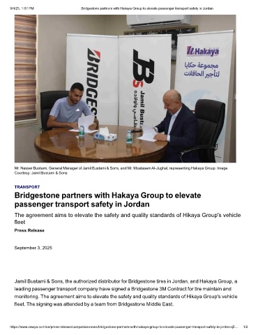 9/4/25, 1:07 PM Bridgestone partners with Hakaya Group to elevate passenger transport safety in Jordan