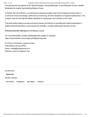 9/4/25, 1:07 PM Bridgestone partners with Hakaya Group to elevate passenger transport safety in Jordan