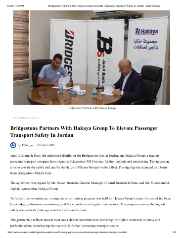 9/4/25, 1:08 PM Bridgestone Partners with Hakaya Group to Elevate Passenger Transport Safety in Jordan | Web Release