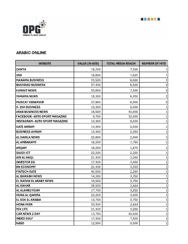 WEBSITE VALUE (IN AED) TOTAL MEDIA REACH NUMBER OF HITS