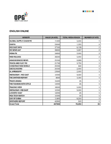 WEBSITE VALUE (IN AED) TOTAL MEDIA REACH NUMBER OF HITS