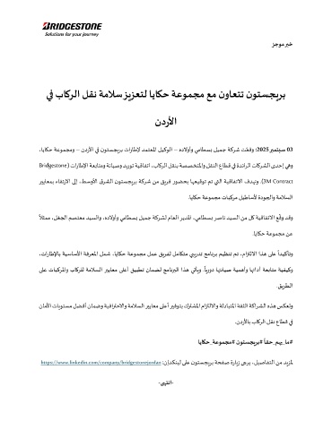 Bridgestone ) تارﺎﻃﻹا ﺔﻌ�ﺎﺘﻣو ﺔﻧﺎﻴﺻو ﺪ�رﻮﺗ ﺔﻴﻗﺎﻔﺗا ،بﺎ�ﺮﻟا ﻞﻘﻨﺑ ﺔﺼﺼﺨﺘﳌاو ﻞﻘﻨﻟا عﺎﻄﻗ �� ةﺪﺋاﺮﻟا تﺎ�ﺮﺸﻟا ىﺪﺣإ ��و