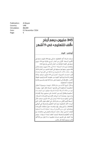 Publication: Al Bayan Country: UAE Circulation: 88,000 Date: 01 November 2024 Page: 5