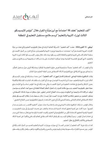 ﺔﻟود ﻦﻣ ﺬﺨﺘﺗ ﻟاو ﻢﻴﻠﻌﺘﻟا ﺎﻴﺟﻮﻟﻮﻨﻜﺗ لﺎﺠﻣ ةﺪﺋاﺮﻟا ﺔﻴﳌﺎﻌﻟا ﺔﻛﺮـــــــــﺸﻟا ،"ﻢﻴﻠﻌﺘﻠﻟ ﻒﻟأ" تﺪﻘﻋ - 2024 ﺮ ﻮﺘﻛأ - 15 ﻇﻮﺑأ