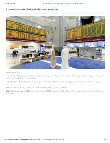 طﺳو ،ﺔﯾﻟﺎﻣﻟا قاروﻸﻟ ﻲﺑظوﺑأ قوﺳ ﻊﻔﺗرا ﺎﻣﻧﯾﺑ ، ﻲﻟﺎﻣﻟا ﻲﺑد قوﺳ ﻊﺟارﺗﯾﻟ ،سﯾﻣﺧﻟا موﯾﻟا تﻼﻣﺎﻌﺗ مﺎﺗﺧﺑ ﺔﯾﺗارﺎﻣﻹا لﺎﻣﻟا قاوﺳأ تارﺷؤﻣ ءادأ نﯾﺎﺑﺗ :رﺷﺎﺑﻣ ـ ﻲﺑظوﺑأ