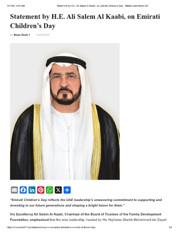 3/17/25, 9:50 AM Statement by H.E. Ali Salem Al Kaabi, on Emirati Children's Day - Middle East News 247