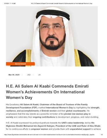3/10/25, 11:14 AM H.E. Ali Salem Al Kaabi Commends Emirati Women's Achievements on International Women’s Day