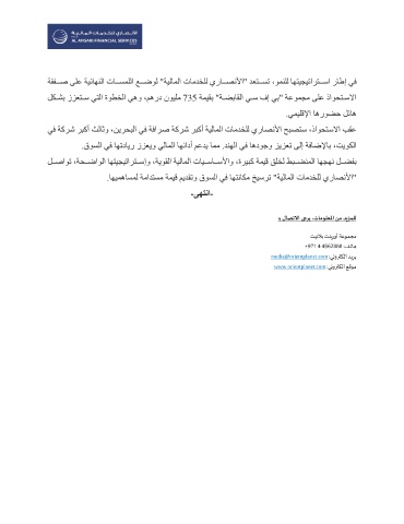ﻲﻓ ﺔﻛﺮـﺷ ﺮﺒﻛأ ﺚﻟﺎﺛو ،ﻦﯾﺮﺤﺒﻟا ﻲﻓ ﺔﻓاﺮـﺻ ﺔﻛﺮـﺷ ﺮﺒﻛأ ﺔﯿﻟﺎﻤﻟا تﺎﻣﺪﺨﻠﻟ يرﺎـﺼﻧﻷا ﺢﺒـﺼﺘـﺳ ، ذاﻮﺤﺘـﺳﻻا ﺐﻘﻋ