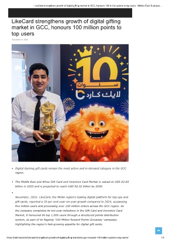 https://mid-east.info/likecard-strengthens-growth-of-digital-gifting-market-in-gcc-honours-100-million-points-to-top-users/ 1/3