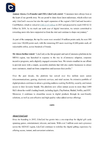 Ammar Alsoos, Co-Founder and CEO, LikeCard, stated: “Consumers have always been at
