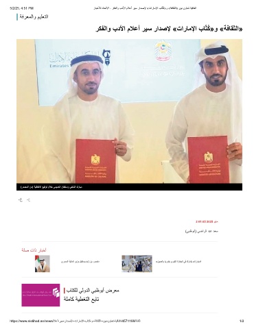 5/2/25, 4:51 PM رﺎﺑﺧﻸﻟ دﺎﺣﺗﻻا - رﻛﻔﻟاو بدﻷا مﻼﻋأ رﯾﺳ رادﺻﻹ «تارﺎﻣﻹا بﺎّﺗُﻛ»و «ﺔﻓﺎﻘﺛﻟا» نﯾﺑ نوﺎﻌﺗ ﺔﯾﻗﺎﻔﺗا