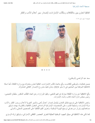 5/2/25, 4:54 PM رﻛﻔﻟاو بدﻷا مﻼﻋأ رﯾﺳ رادﺻﻹ «تارﺎﻣﻹا بﺎّﺗُﻛ»و «ﺔﻓﺎﻘﺛﻟا» نﯾﺑ نوﺎﻌﺗ ﺔﯾﻗﺎﻔﺗا | ﺔﯾﺗارﺎﻣﻹا دﺎﺣﺗﻻا ﺔﻔﯾﺣﺻ