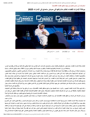 5/26/25, 2:46 PM 2025 تارﺎﻣﻹا ﻲﻓ ﻊﻧﺻا» ضرﻌﻣ ﻲﻓ ﺎﮭﺗﻛرﺎﺷﻣ مﺗﺗﺧﺗ ءﺎﺿﻔﻠﻟ تارﺎﻣﻹا ﺔﻟﺎﻛو | ﮫﯾﺗارﺎﻣﻹا رﺟﻔﻟا ةدﯾرﺟ | ﮫﯾﺗارﺎﻣﻹا رﺟﻔﻟا ةدﯾرﺟ»