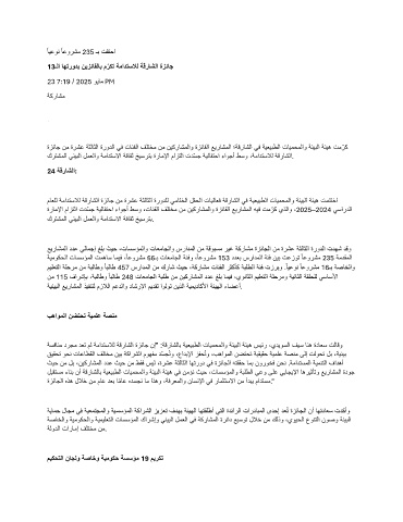 13 ـﻟا ﺎﮭﺗرودﺑ نﯾزﺋﺎﻔﻟﺎﺑ م ّ رﻛﺗ ﺔﻣادﺗﺳﻼﻟ ﺔﻗرﺎﺷﻟا ةزﺋﺎﺟ