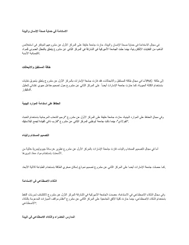 نﻣ ﺔﯾﻟﺎﺧ ﺔﯾرﻣﯾﻟوﺑوﯾﺟ ﺔﻧﺎﺳرﺧ رﯾوطﺗ عورﺷﻣ نﻋ لوﻷا زﻛرﻣﻟﺎﺑ تارﺎﻣﻹا ﺔﻌﻣﺎﺟ تزﺎﻓ ،ءﺎﻧﺑﻟاو مادﺗﺳﻣﻟا مﯾﻣﺻﺗﻟا لﺎﺟﻣ ﻲﻓ ﺎﻣأ