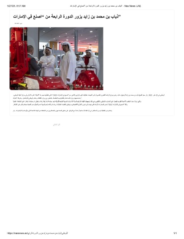5/27/25, 8:57 AM تارﺎﻣﻹا ﻲﻓ ﻊﻧﺻا" نﻣ ﺔﻌﺑارﻟا ةرودﻟا روزﯾ دﯾاز نﺑ دﻣﺣﻣ نﺑ بﺎﯾذ" - Nas News UAE
