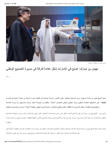 5/27/25, 11:25 AM ﻲﻧطوﻟا ﻊﯾﻧﺻﺗﻟا ةرﯾﺳﻣ ﻲﻓ ﺔﻗرﺎﻓ ﺔﻣﻼﻋ لّﻛﺷ تارﺎﻣﻹا ﻲﻓ ﻊﻧﺻا :كرﺎﺑﻣ نﺑ نﺎﯾﮭﻧ