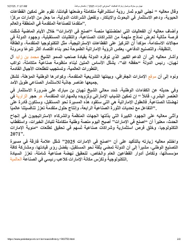 ةﺮﯿﺴﻣ ﻲﻓ ﺔﻗرﺎﻓ ﺔﻣﻼﻋ ﻞّﻜﺷ ”2025 تارﺎﻣﻹا ﻲﻓ ﻊﻨﺻا“ نأ ﻰﻠﻋ ﺪﯿﻛﺄﺘﻟﺎﺑ ﮫﺗرﺎﯾز ﮫﯿﻟﺎﻌﻣ ﻢﺘﺘﺧاو