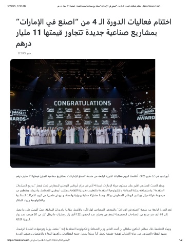 5/27/25, 8:36 AM مھرد رﺎﯾﻠﻣ 11 ﺎﮭﺗﻣﯾﻗ زوﺎﺟﺗﺗ ةدﯾدﺟ ﺔﯾﻋﺎﻧﺻ ﻊﯾرﺎﺷﻣﺑ "تارﺎﻣﻹا ﻲﻓ ﻊﻧﺻا" نﻣ 4 ـﻟا ةرودﻟا تﺎﯾﻟﺎﻌﻓ مﺎﺗﺗﺧا - Nas News UAE