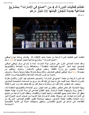 ﻊﯾرﺎﺸﻤﺑ "تارﺎﻣﻹا ﻲﻓ ﻊﻨﺻا" ﻦﻣ 4 ـﻟا ةروﺪﻟا تﺎﯿﻟﺎﻌﻓ مﺎﺘﺘﺧا