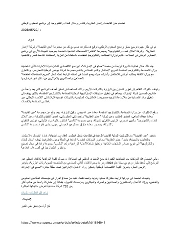 ىلإ فدهي يذلاو ،ةمدقتملا ايجولونكتلاو ةعانصلل ةينطولا ةيجيتارتسلإا تافدهتسم قيقحت يف مهاسيو تاراملإا ةلودل نيسمخلا عيراشم