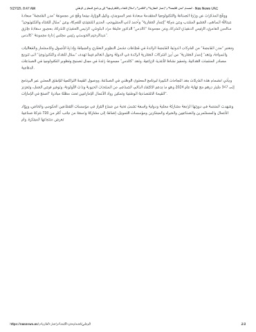 5/27/25, 8:47 AM ﻲﻧطوﻟا ىوﺗﺣﻣﻟا ﺞﻣﺎﻧرﺑ ﻰﻟإ "ﺎﯾﺟوﻟوﻧﻛﺗﻟاو ءاذﻐﻠﻟ لﻼﺳ"و "سدﻟﺎﻛ"و "ﺔﯾرﺎﻘﻌﻟا رﺎﻣﻋإ"و "ﺔﺿﺑﺎﻘﻟا ندﻣ" مﺎﻣﺿﻧا - Nas News UAE