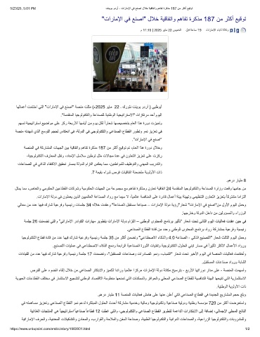 ﺎﮭﻟﺎﻣﻋأ تﻣﺗﺗﺧا ﻲﺗﻟا "تارﺎﻣﻹا ﻲﻓ ﻊﻧﺻا" ﺔﺻﻧﻣ تﻠﺛﻣ (ء2025 وﯾﺎﻣ 22 ۔ كروﺗﻧ تﻧﯾوﺑ ودرأ ) ﻲﺑظوﺑأ