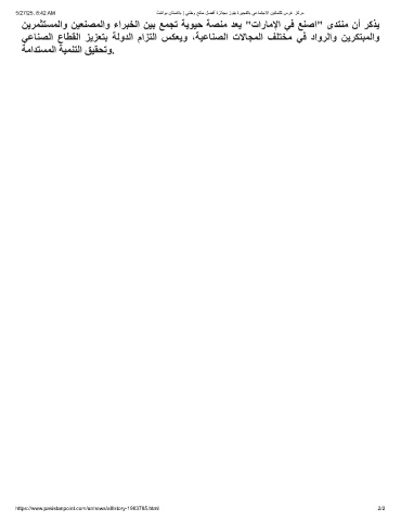 ﻦﯾﺮﻤﺜﺘﺴﻤﻟاو ﻦﯿﻌﻨﺼﻤﻟاو ءاﺮﺒﺨﻟا ﻦﯿﺑ ﻊﻤﺠﺗ ﺔﯾﻮﯿﺣ ﺔﺼﻨﻣ ﺪﻌﯾ "تارﺎﻣﻹا ﻲﻓ ﻊﻨﺻا" ىﺪﺘﻨﻣ نأ ﺮﻛﺬﯾ