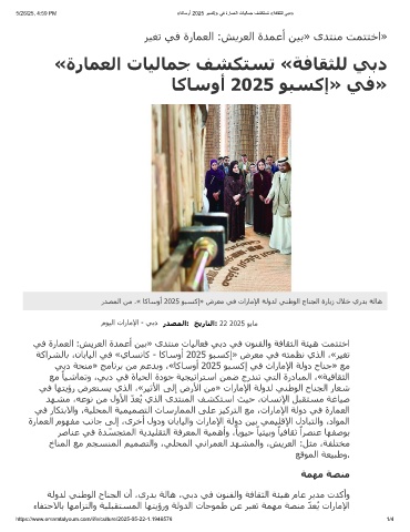 5/26/25, 4:59 PM «ﺎﻛﺎﺳوأ 2025 وﺑﺳﻛإ» ﻲﻓ ةرﺎﻣﻌﻟا تﺎﯾﻟﺎﻣﺟ فﺷﻛﺗﺳﺗ «ﺔﻓﺎﻘﺛﻠﻟ ﻲﺑد»