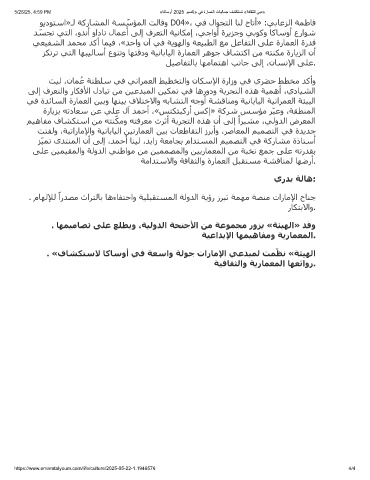 5/26/25, 4:59 PM «ﺎﻛﺎﺳوأ 2025 وﺑﺳﻛإ» ﻲﻓ ةرﺎﻣﻌﻟا تﺎﯾﻟﺎﻣﺟ فﺷﻛﺗﺳﺗ «ﺔﻓﺎﻘﺛﻠﻟ ﻲﺑد»