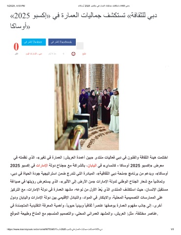 5/26/25, 4:59 PM «ﺎﻛﺎﺳوأ 2025 وﺑﺳﻛإ» ﻲﻓ ةرﺎﻣﻌﻟا تﺎﯾﻟﺎﻣﺟ فﺷﻛﺗﺳﺗ «ﺔﻓﺎﻘﺛﻠﻟ ﻲﺑد»