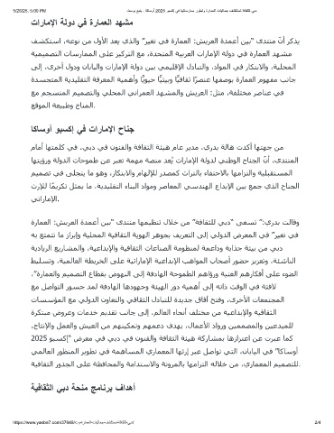 5/26/25, 5:00 PM تﺳوﺑ ﻊﺑﻧﯾ - ﺎﻛﺎﺳوأ 2025 وﺑﺳﻛإ ﻲﻓ ﺎﮭﺗﺎﺳرﺎﻣﻣ روطﺗو ةرﺎﻣﻌﻟا تﺎﯾﻟﺎﻣﺟ فﺷﻛﺗﺳﺗ ﺔﻓﺎﻘﺛﻠﻟ ﻲﺑد