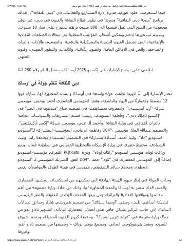 5/26/25, 5:00 PM تﺳوﺑ ﻊﺑﻧﯾ - ﺎﻛﺎﺳوأ 2025 وﺑﺳﻛإ ﻲﻓ ﺎﮭﺗﺎﺳرﺎﻣﻣ روطﺗو ةرﺎﻣﻌﻟا تﺎﯾﻟﺎﻣﺟ فﺷﻛﺗﺳﺗ ﺔﻓﺎﻘﺛﻠﻟ ﻲﺑد