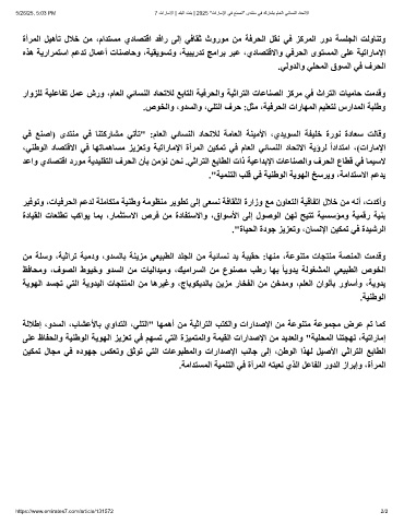 5/26/25, 5:03 PM 7 تارﺎﻣﻻا | دﻠﺑﻟا تﻧﺑ | 2025 "تارﺎﻣﻹا ﻲﻓ ﻊﻧﺻا" ىدﺗﻧﻣ ﻲﻓ كرﺎﺷﯾ مﺎﻌﻟا ﻲﺋﺎﺳﻧﻟا دﺎﺣﺗﻻا